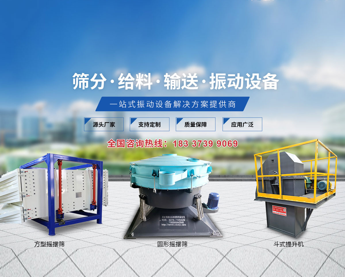 新鄉市鑫達振動設備有限公司是研制、生產、銷售篩分設備、振動設備、提升設備的廠家,以研制生產振動電機,篩分設備而著稱于國內外市場。我公司與中國礦業大學北京理工大學、機電部設計院等高校和科研設計單位緊密配合,依托企業雄厚的經濟基礎完整的技術資料、精良的加工設備以及一批高素質的技術職業隊伍,導入ISO9001:2000國際質量管理體系,以科學管理模式、優良售后服務、不斷完善產品質量。  公司主要產品有:振動篩、超聲波振動篩、直線振動篩、礦用重型篩、旋振篩、脫水篩、直排篩、系列振動電機、振動給料機、給料斗、振動振動防閉篩、振動磨機、斗式提升機、垂直(螺旋)提升機、皮帶輸送機等。  公司一貫堅持:“價格合理、服務完善”的宗旨,憑借著高質量高水平的產品,良好的信譽、完善的服務、竭誠與您雙贏合作、共同發展、共創輝煌!